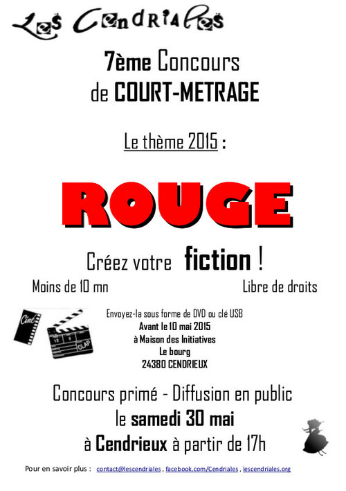 Ce vieux partenaire de l’asso Souliers organise une nouvelle fois, en 2015, son concours de courts-métrage. Rouge. C’est le thème de cette année. Cela vous inspire ? Vous avez jusqu’au 10 mai !