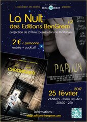 L’association de cinéma de Vannes LES ÉDITIONS BENGREM organise le samedi 25 février 2017 une grande soirée projection intitulée LA 2e NUIT DES ÉDITIONS BENGREM (la première ayant eu lieu en 2012 !) au Palais des Arts de Vannes à partir de 20h30.