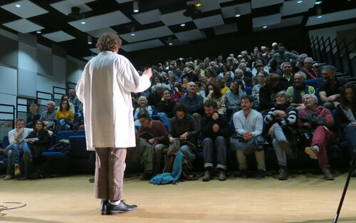 – 30 personnes minimum (spectacle interactif = sans public, pas de spectacle…), pas de maximum.