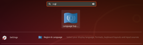 - 6 : Vous êtes maintenant "sous linux". Le seul petit problème que vous allez rencontrer, français que vous êtes, c’est le clavier, paramétré par défaut en QWERTY. Pour cela : appuyez sur la touche "windows", et tapez "reg" dans la barre de recherche, puis cliquez sur "Regions and laguages"