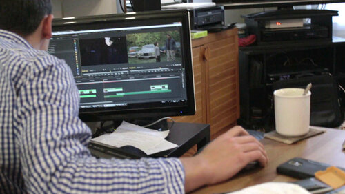 - Dimanche matin : si le montage a montré des lacunes, et selon les disponibilités des acteurs, nous allons rapidement tourner quelques plans supplémentaires pour corriger. En parallèle, le musicien passe voir le premier montage (Ours) et se met à travailler la composition.